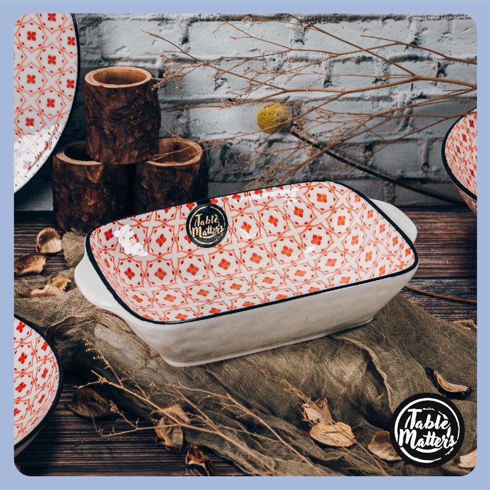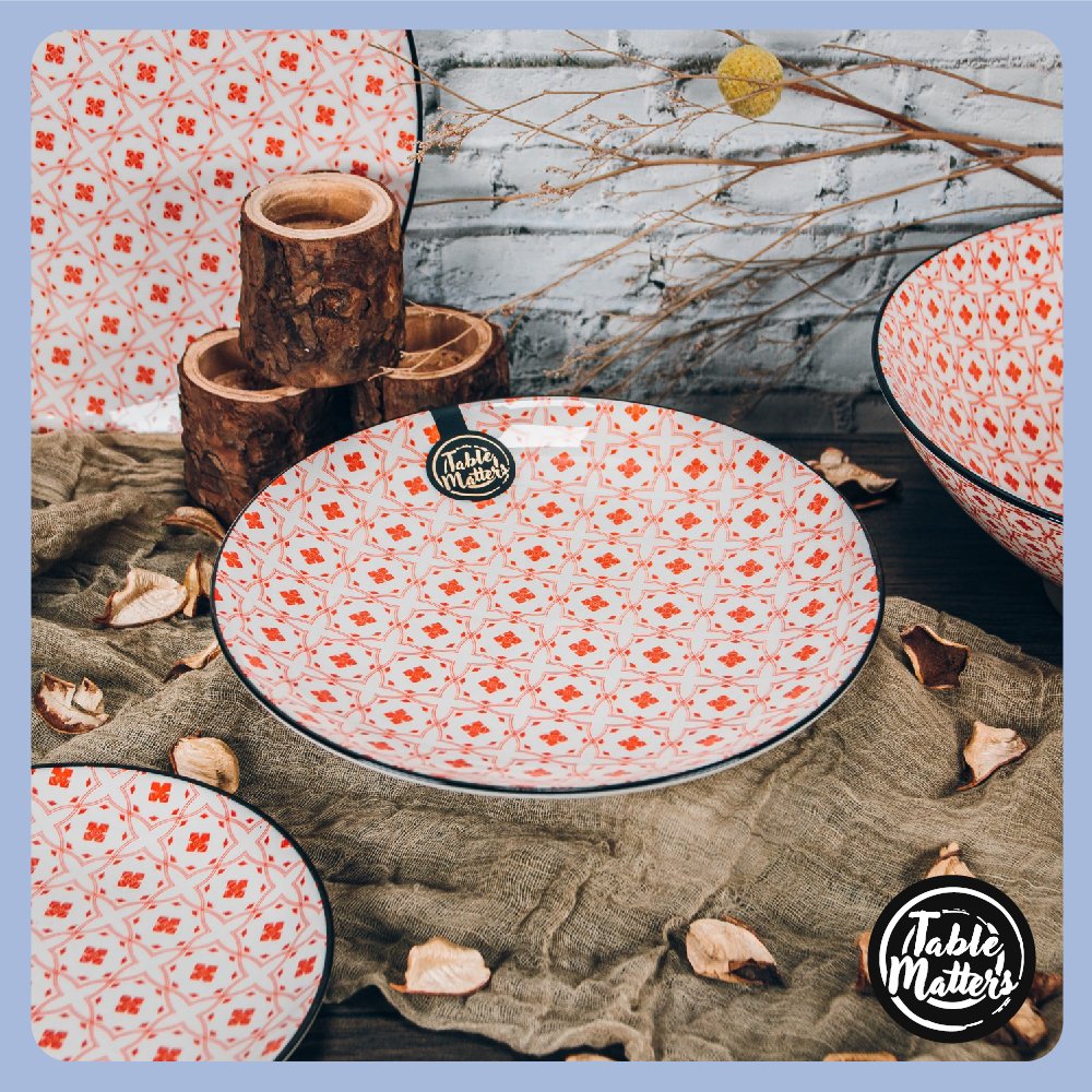 Elevate your meals with artistry and nature. elegantly presented on the Crisscross Red Collection by Table Matters. Moulded from top-tier Ceramic. every inch of these tableware whispers tales of craftsmanship and precision. Its sublime pattern. a delightful cross between nature’s wonder and artistic flair. is an eye-charmer testament to its enduring strength.