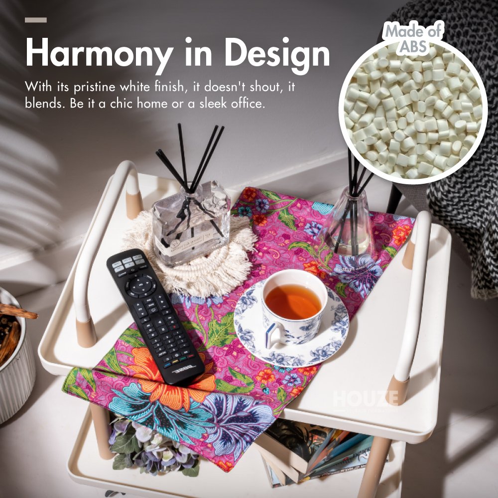 Revolutionise Your Space: Discover the HOUZE 2-Tier Wheeled Rectangular/Round/Oval Table Trolley in pristine white! Elevate any room or workspace with this versatile piece. Made from robust ABS material. it’s built to withstand the test of time. promising durability even with daily use.