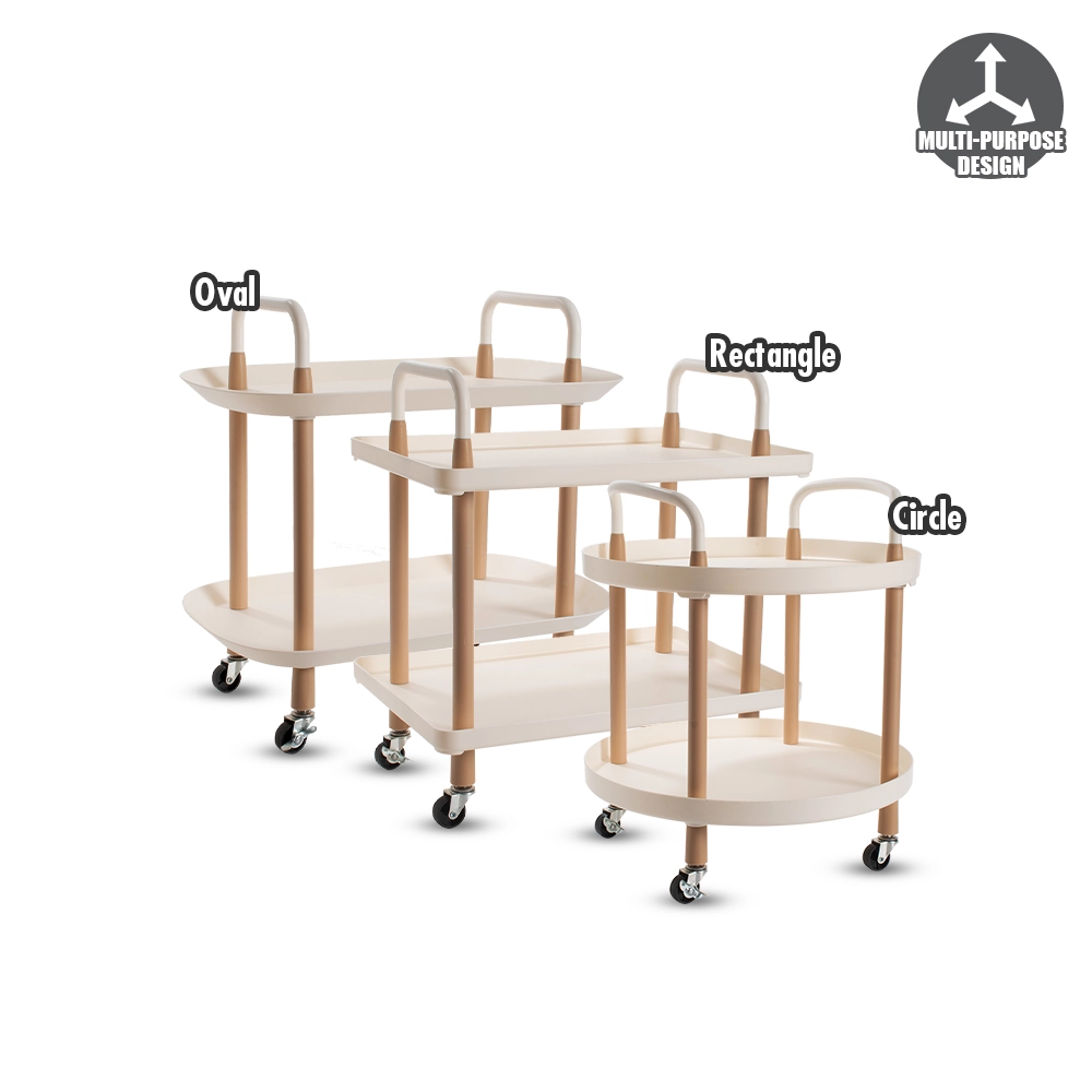 2 Tier Wheeled Oval Table Trolley (White) – 58L x 36W  x 56H cm