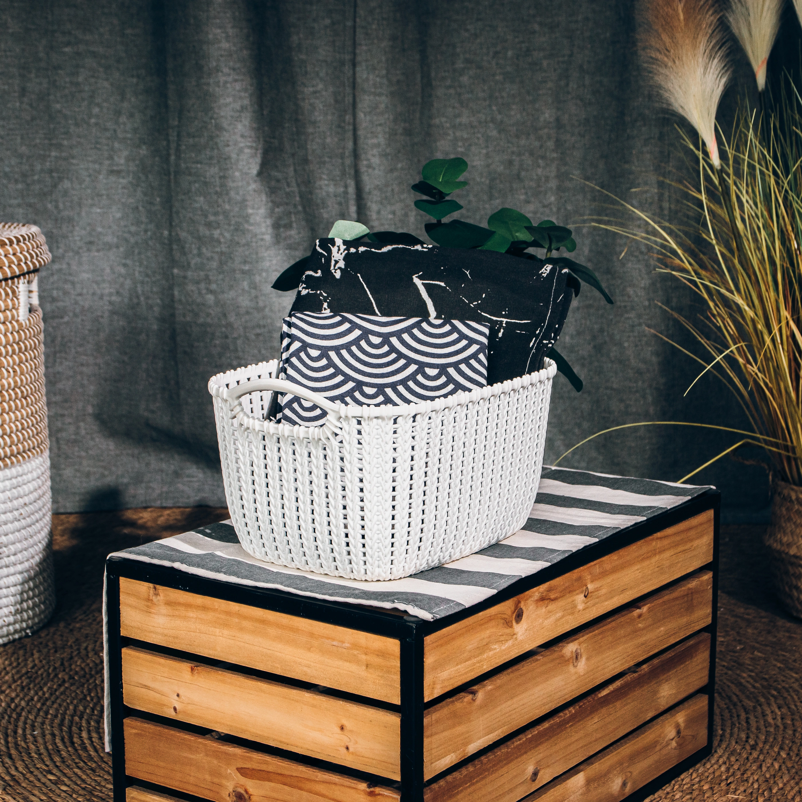 The HOUZE Braided Storage Basket with Handle (Small) is a modern take on a contemporary style for storage. It’s made with 100% Virgin Polypropylene (PP) plastic weaved in a stylish pattern and comes in two color options! The aesthetic value is paired with a tough exterior. keeping your items safely contained inside. It’s multi-purpose storage that can beautify any home.