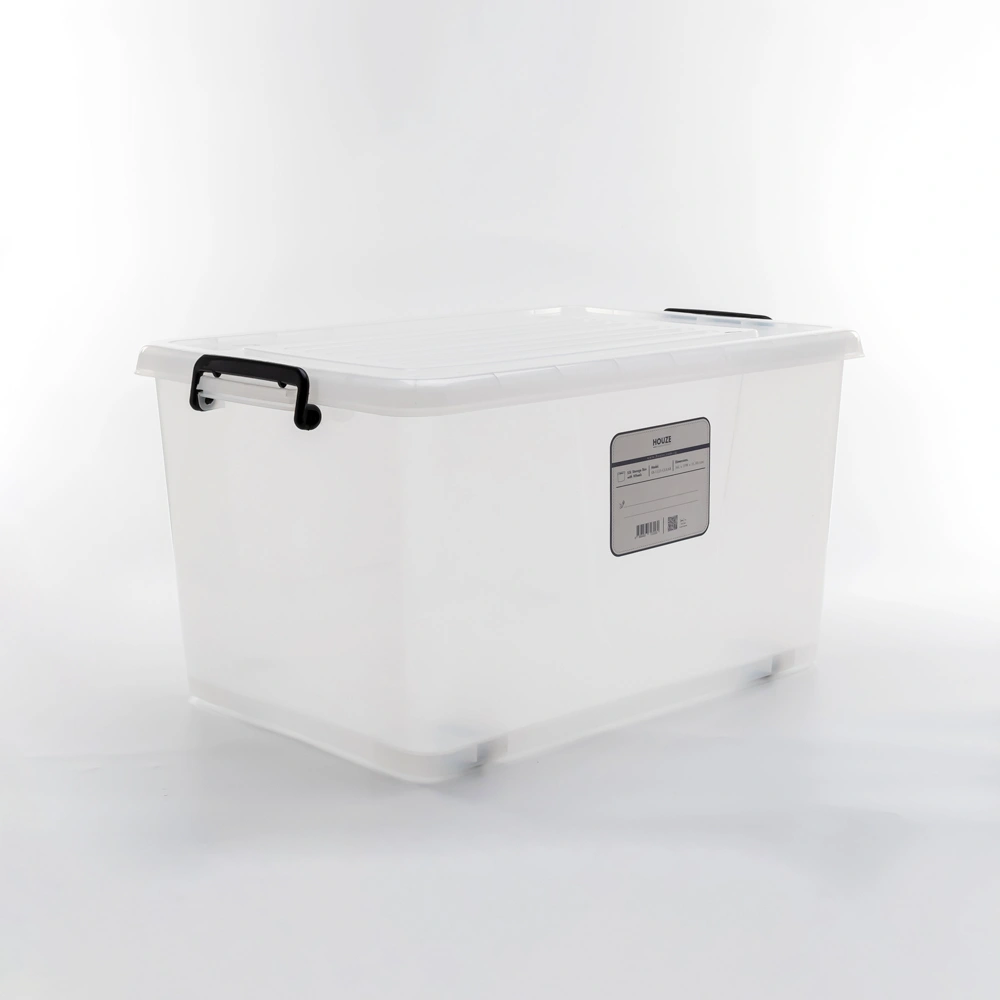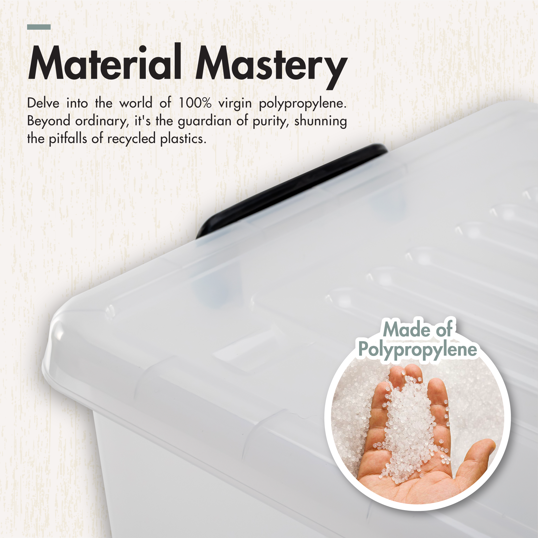 Step away from conventional storage options and embrace a world where style and functionality merge. With a transparent body. peeking inside is a breeze; no need to lift the lid! Accentuated by a chic black handle and wheels. this underbed box offers flair without compromising utility. Its snap-lock side handles secure your valuables. while the reinforced bottom promises unparalleled stacking stability.