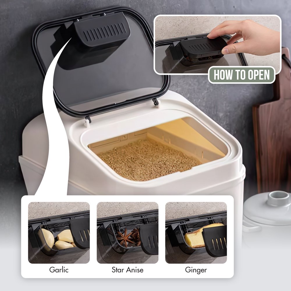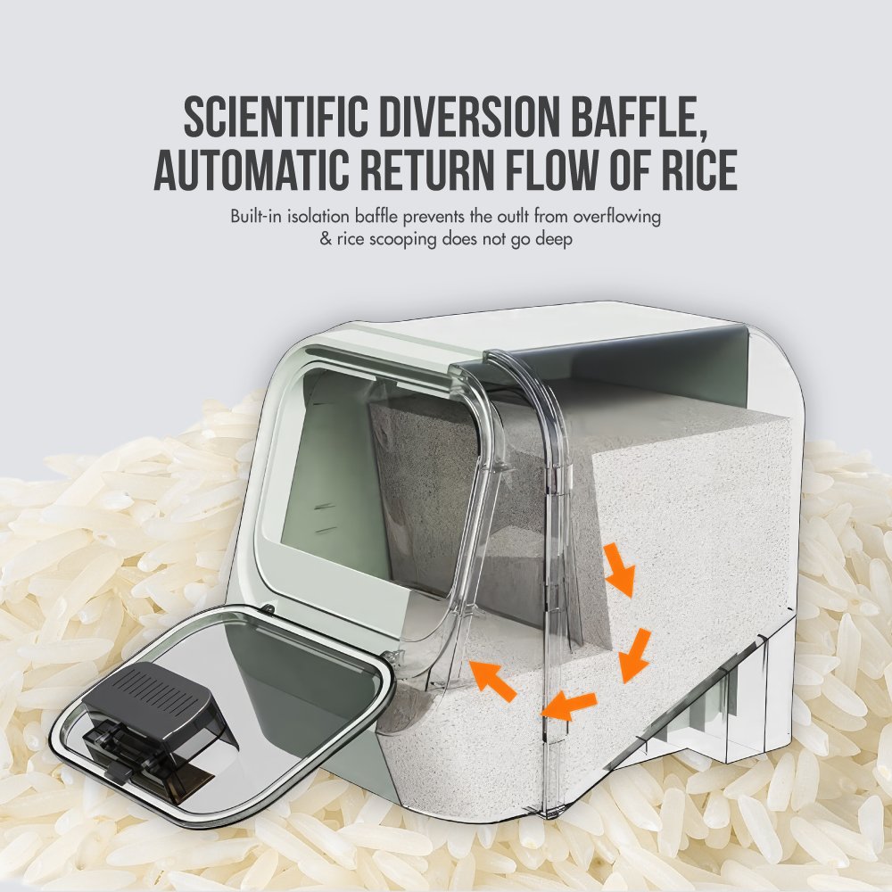 The KitchenMate rice container has an automatic backflow out and a tight seal function. making it astonishingly easy to use and store. Its versatile design lets you store more than just rice?€?you can stash away your pasta. cereal. or pet food.