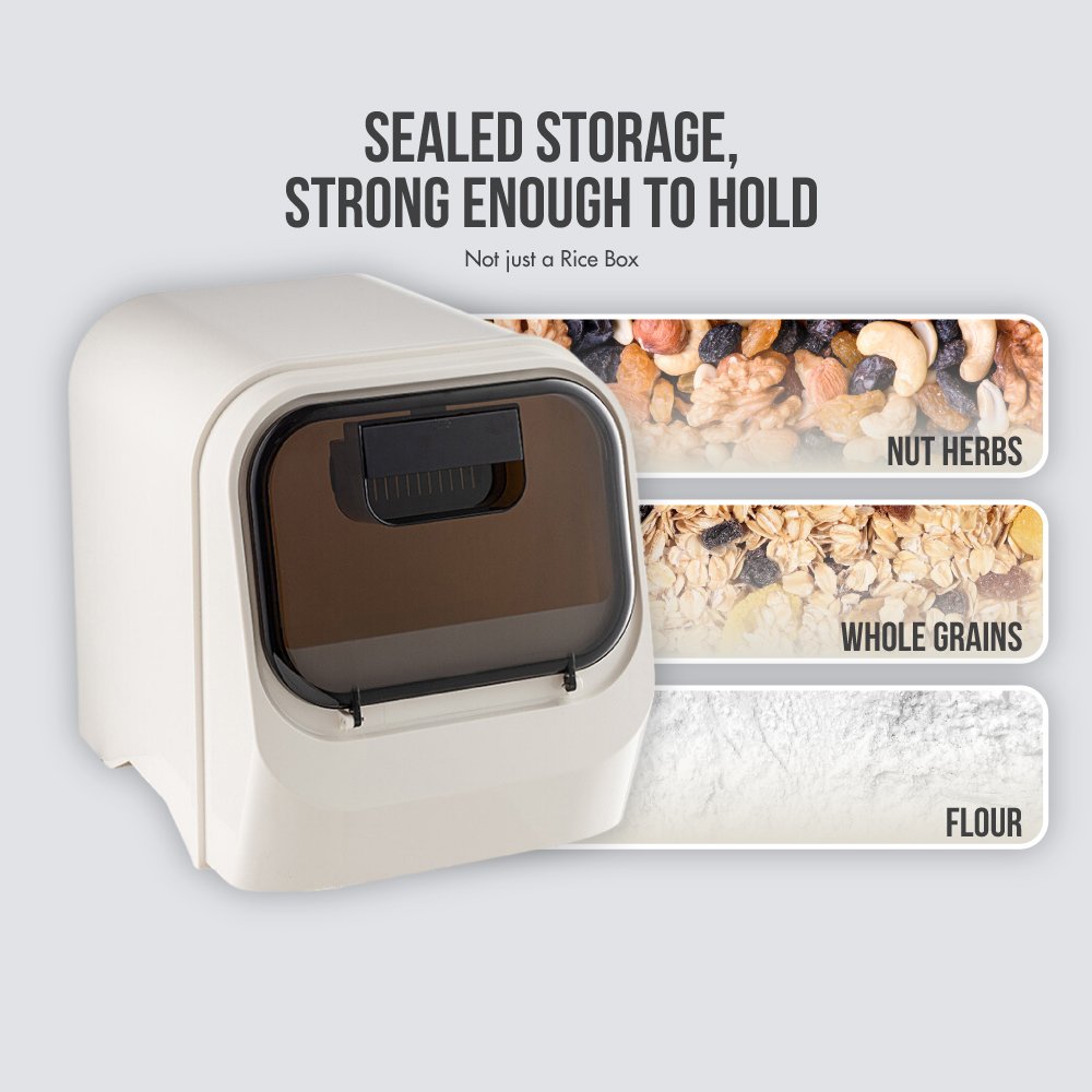 When it comes to storing rice or any other essential grains. KitchenMate offers you an unparalleled experience with this 5kg & 10kg Moisture-Proof Airtight Locking Rice Container. Designed with supreme poly materials. this white beauty matches your modern kitchen decor and guarantees a prolonged shelf life for your stored items.