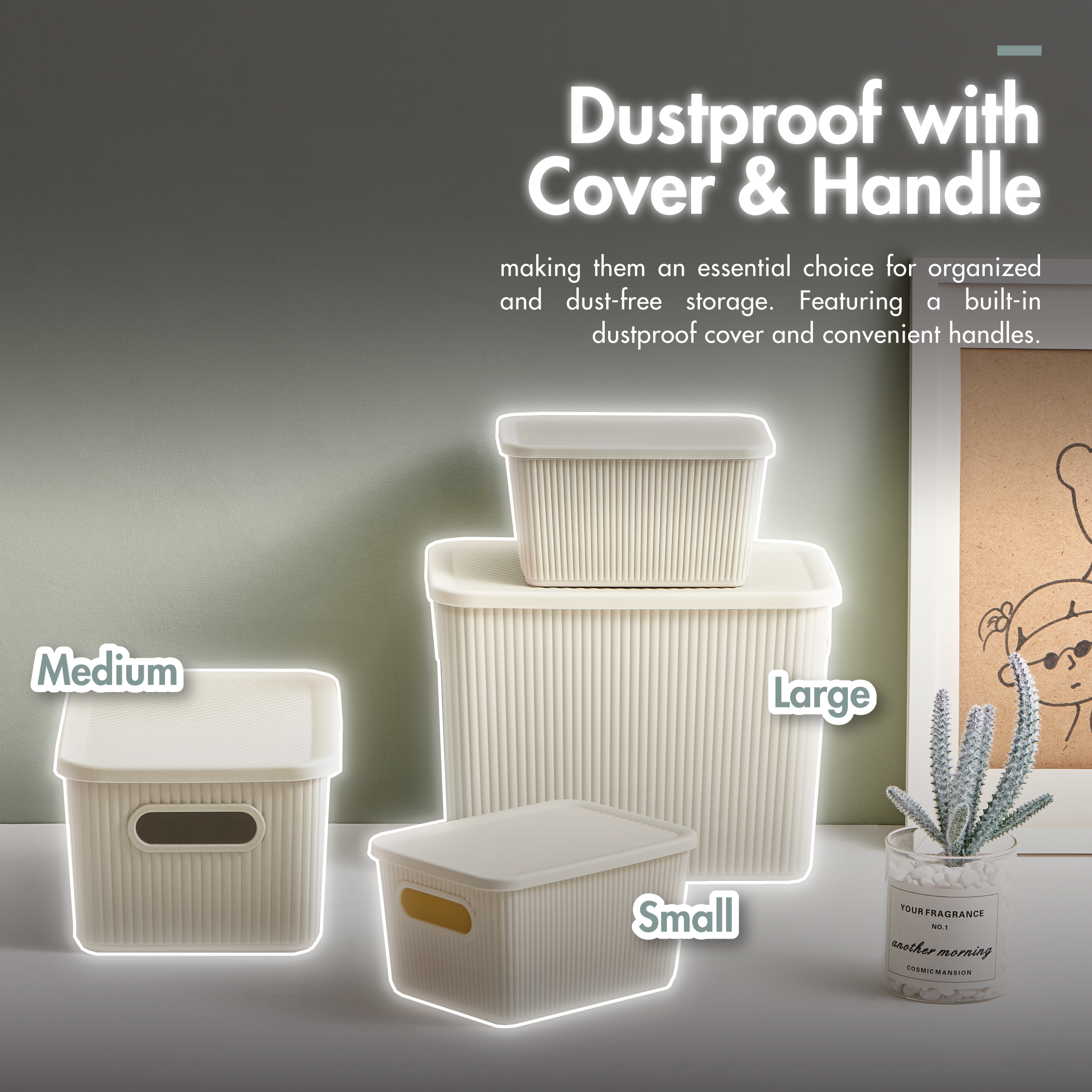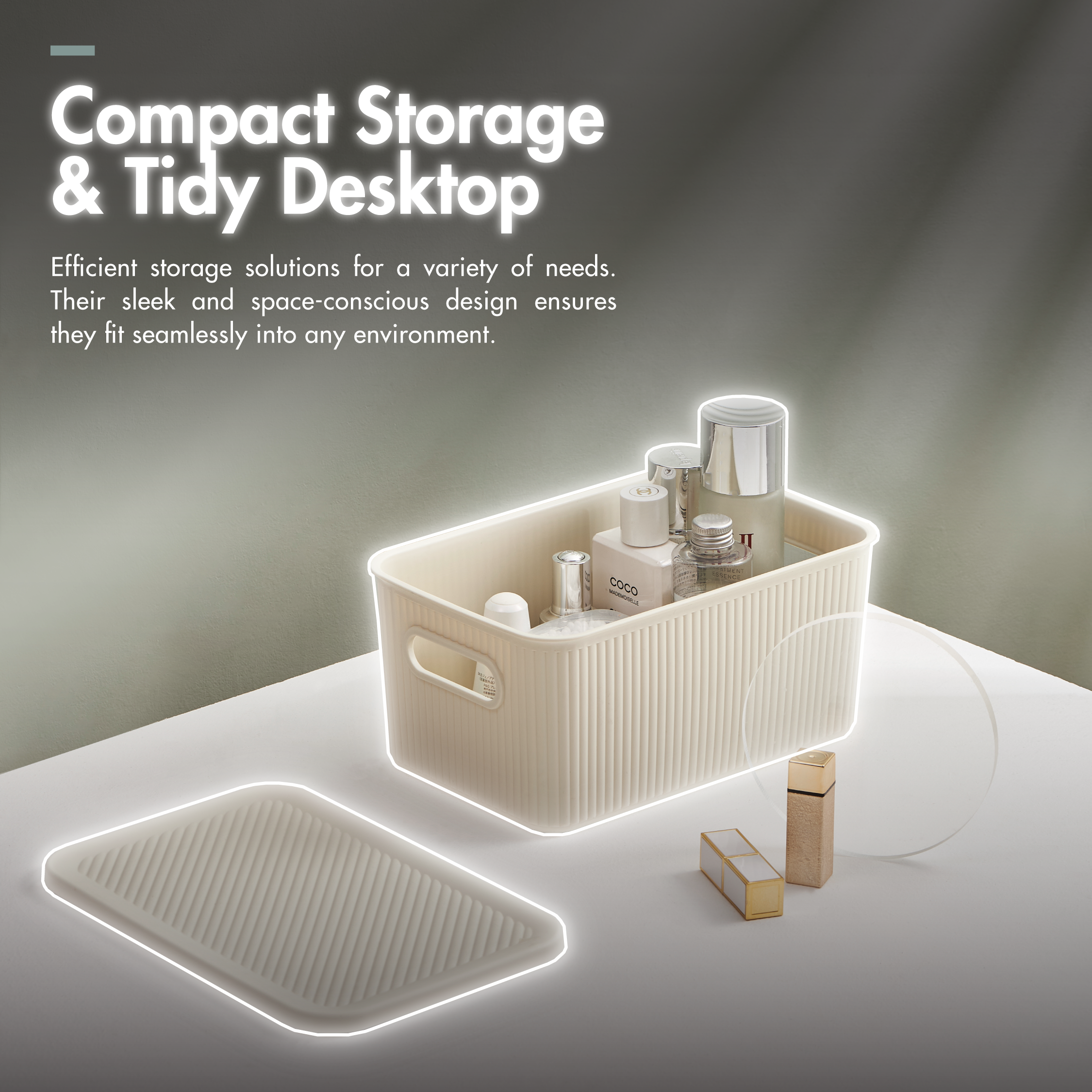 HOUZE – ‘Carre’ Single Tier Multi-Functional Collapsible Sliding Lid Storage Box w/o Wheels – Small | Medium – Organizer