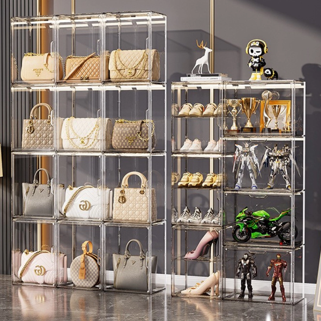 - Transparent Display: The clear acrylic lets you easily see and identify your handbags. wallets. and clutches at a glance. making it easy to choose the perfect accessory for any occasion without rummaging.