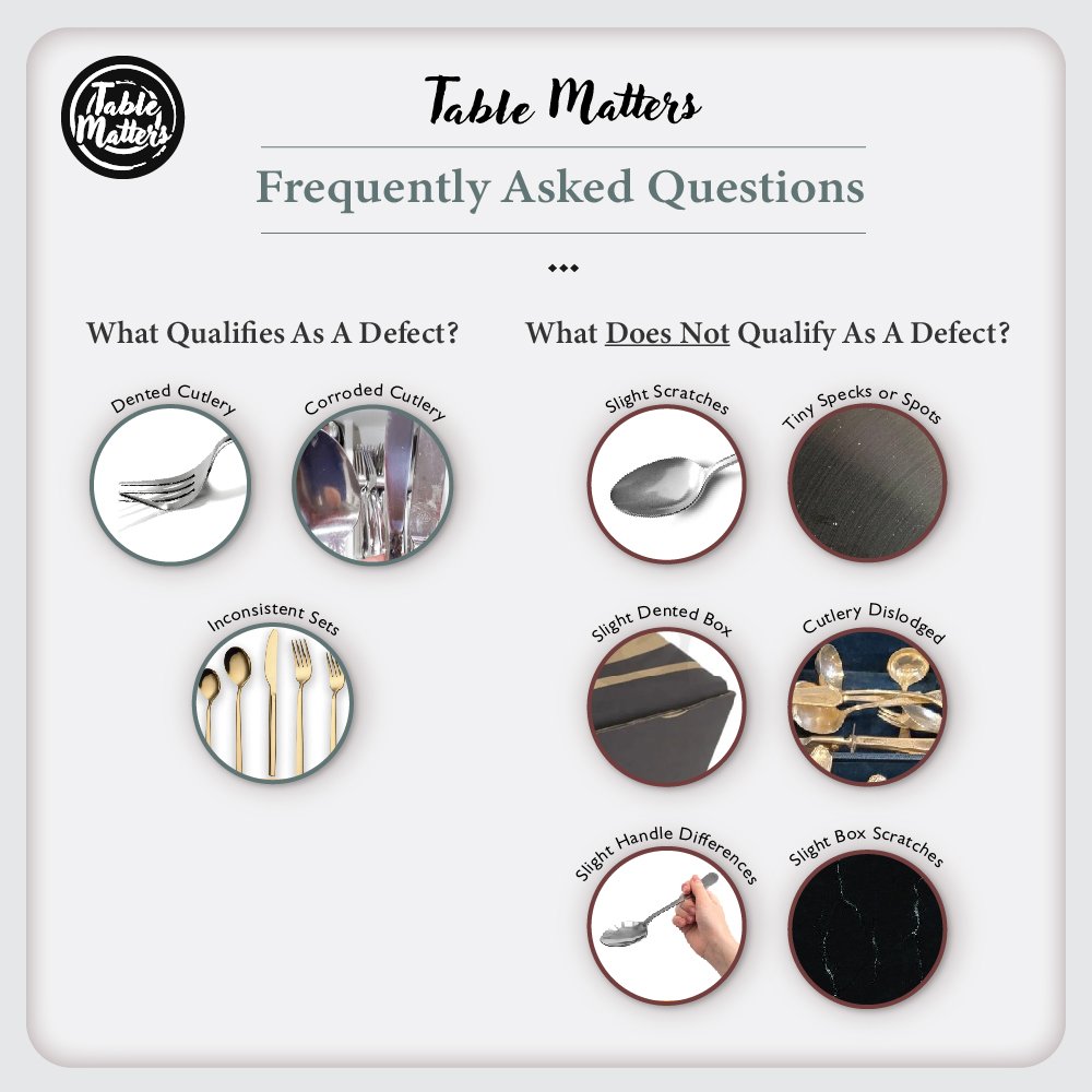 Crafted from the finest high-grade stainless steel and accentuated with meticulous design elements. this cutlery set embodies a perfect melange of durability and aesthetic charm. Table Matters believes in curating perfection. ensuring every meal becomes a masterpiece. Your cutlery is not just a tool but a statement of your style. a testament to your unique taste. and an ambassador of your hospitality.