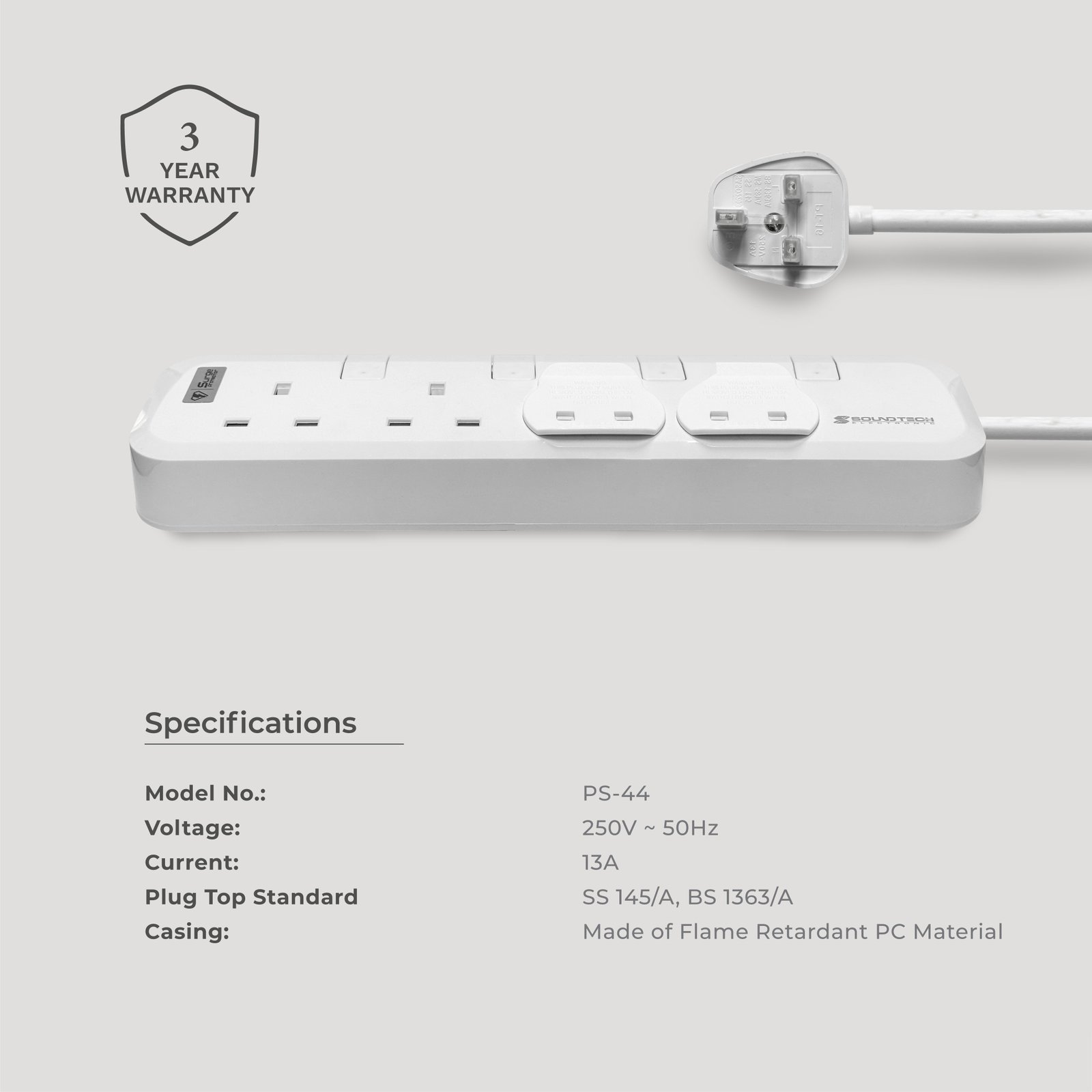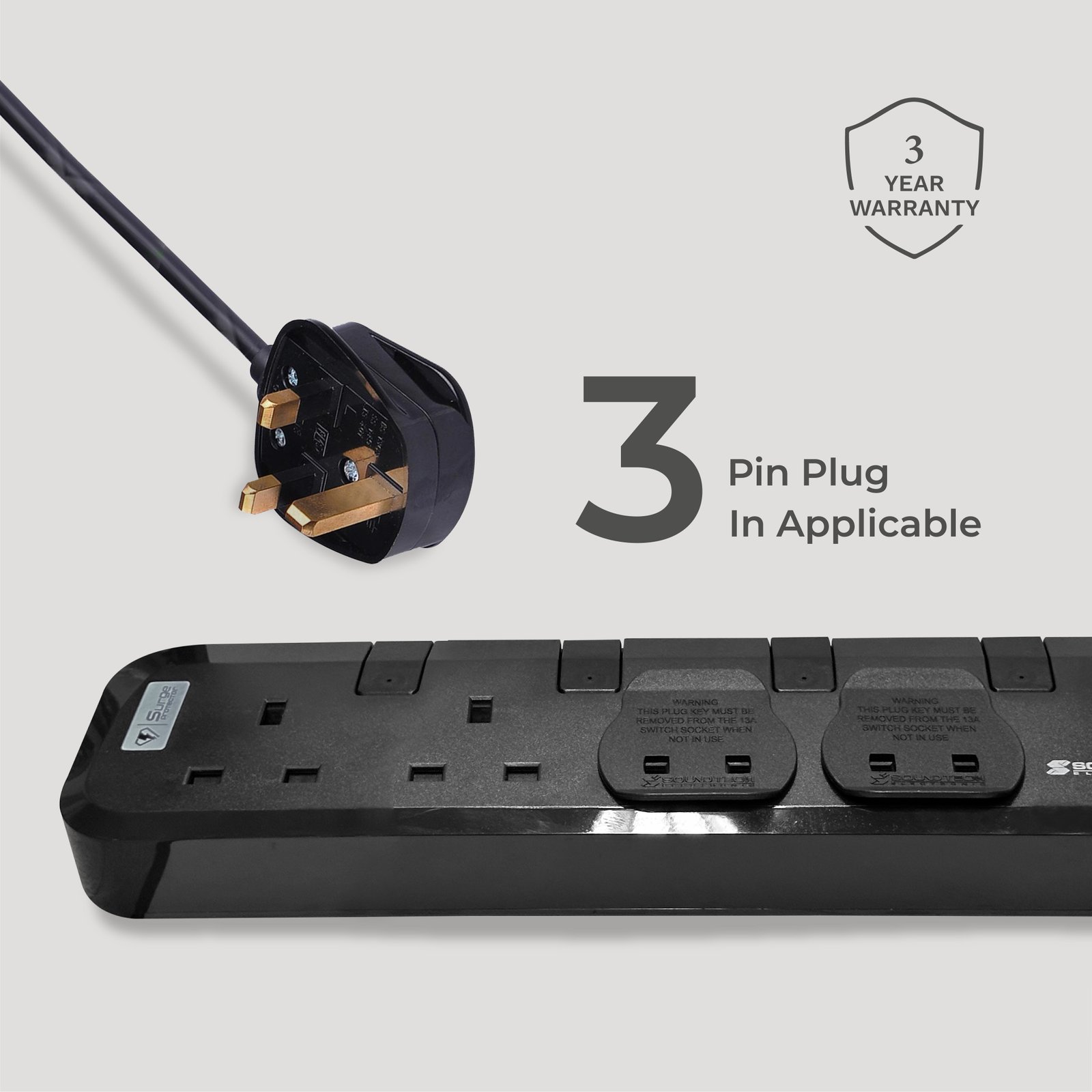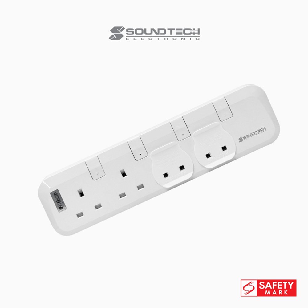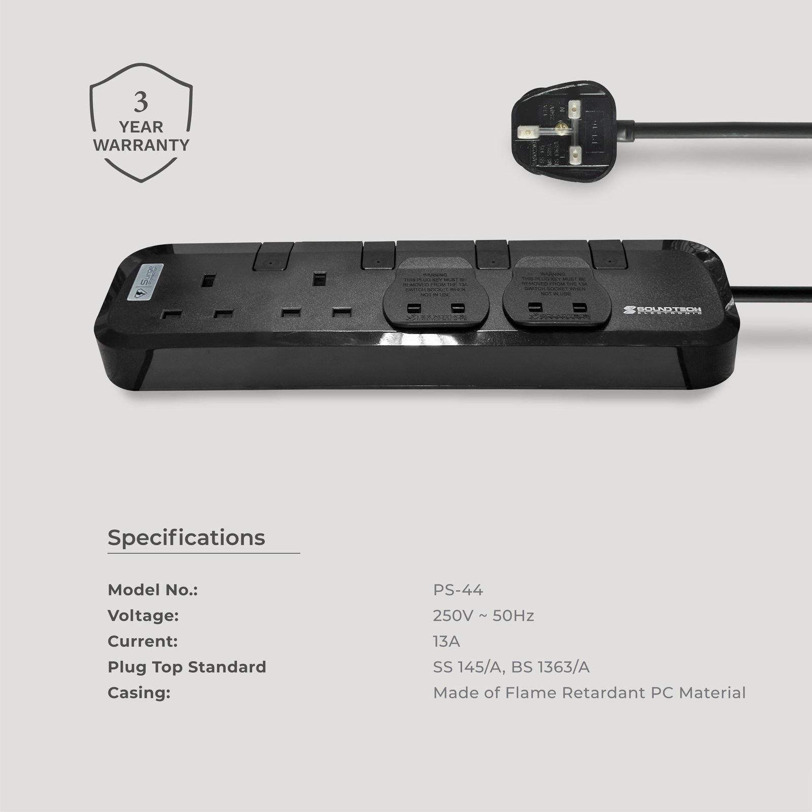 SOUNDTECH – 4Ways Power Indicator Extension Socket 3 Metres. Black (SET OF 2)