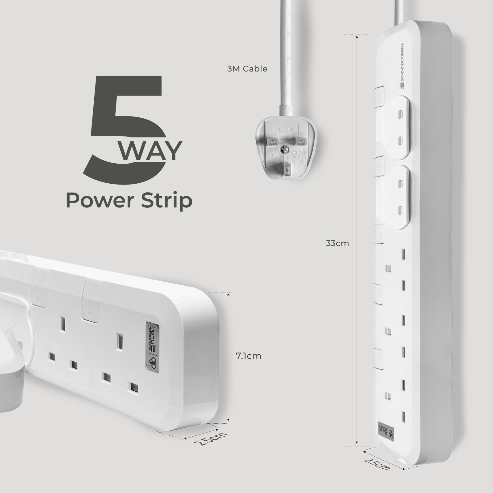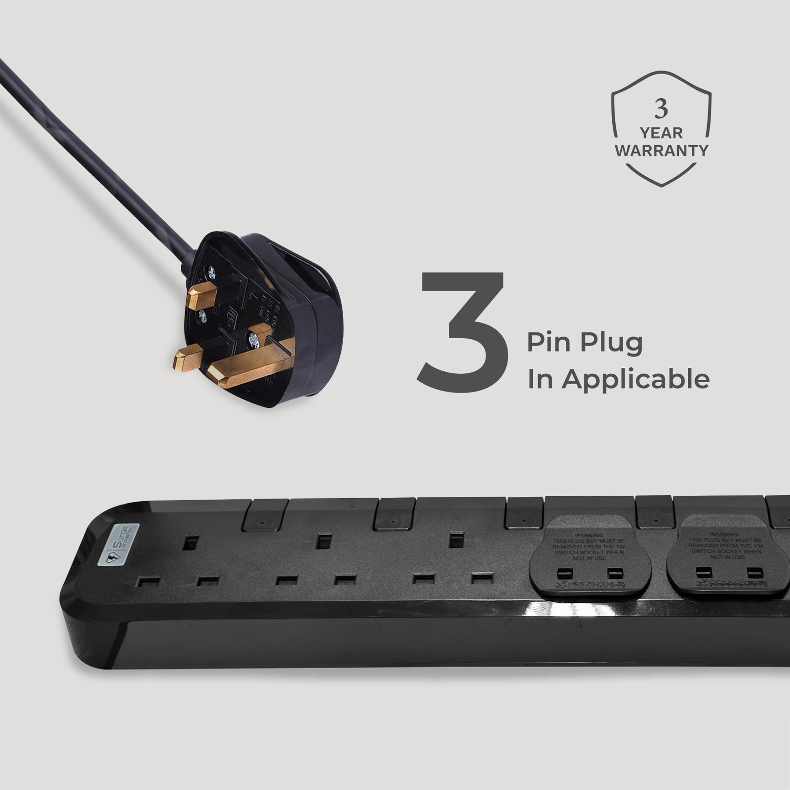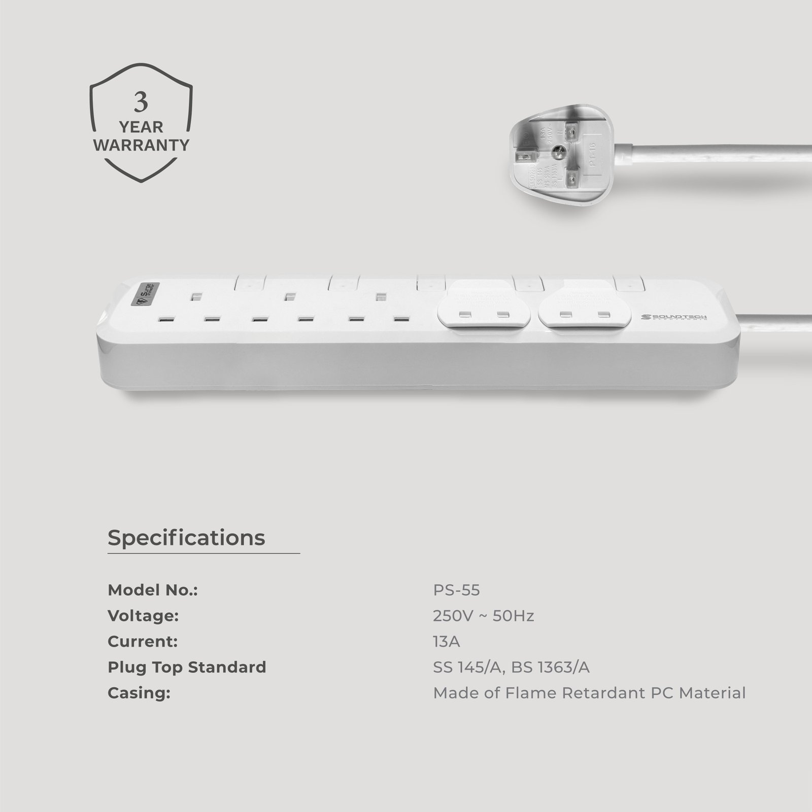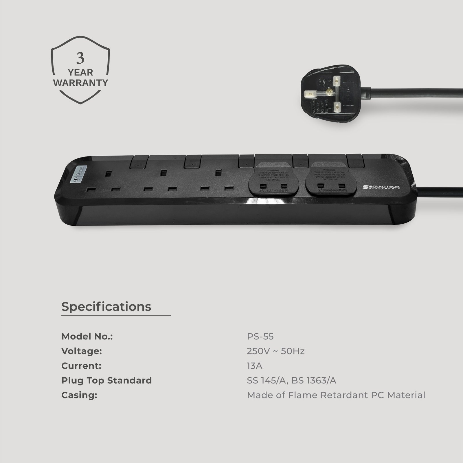 Total Max. Loading of 5 Sockets:Â 13A. 3250W